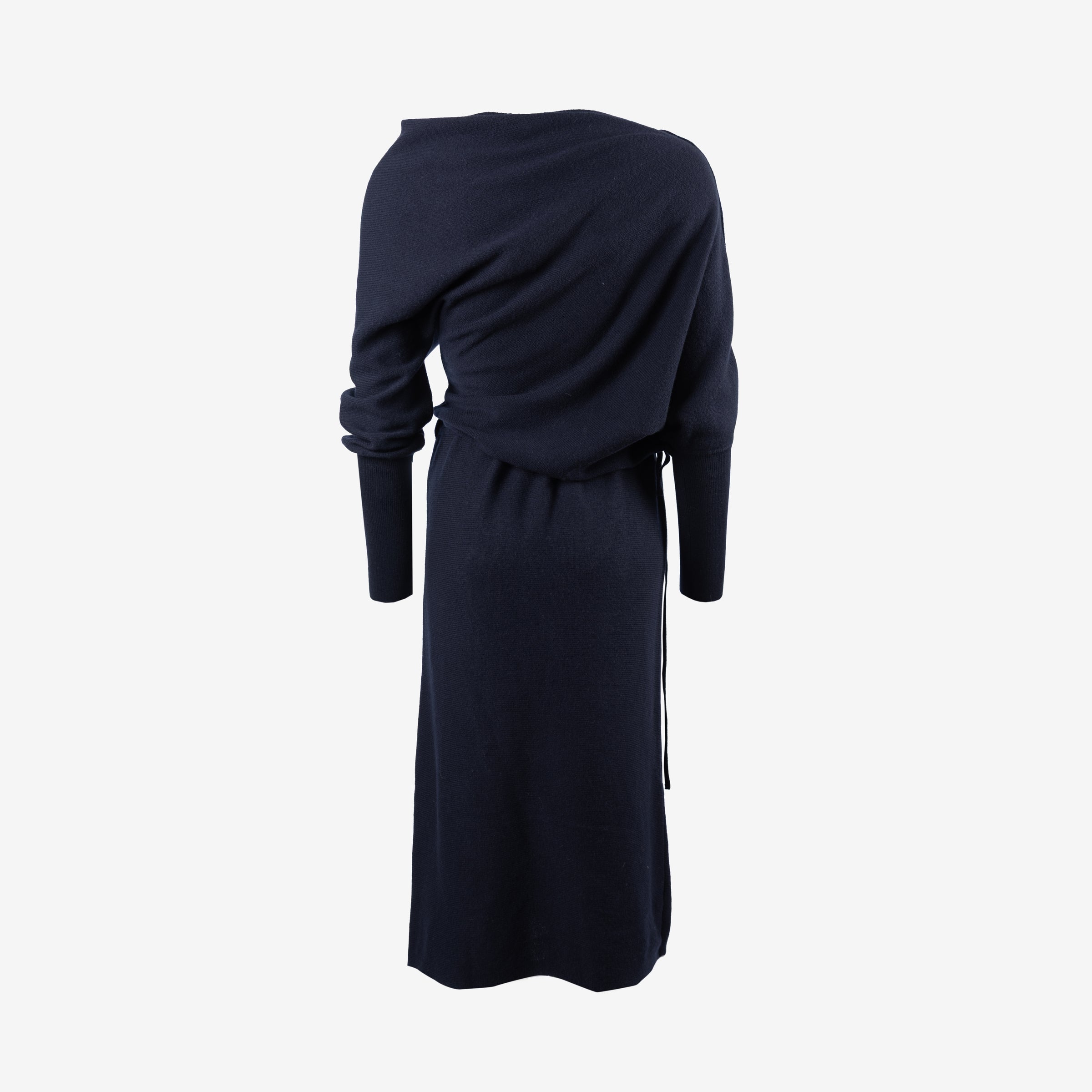 Het vloeiende silhouet volgt moeiteloos de lijnen van het lichaam, terwijl de zachte drapering op de rug en het verstelbare lint in de taille een vrouwelijk accent toevoegen. De zijkanten van de mouwen kunnen subtiel geopend worden met knoopjes — een verfijnd detail dat beweging en speelsheid toevoegt aan het silhouet.