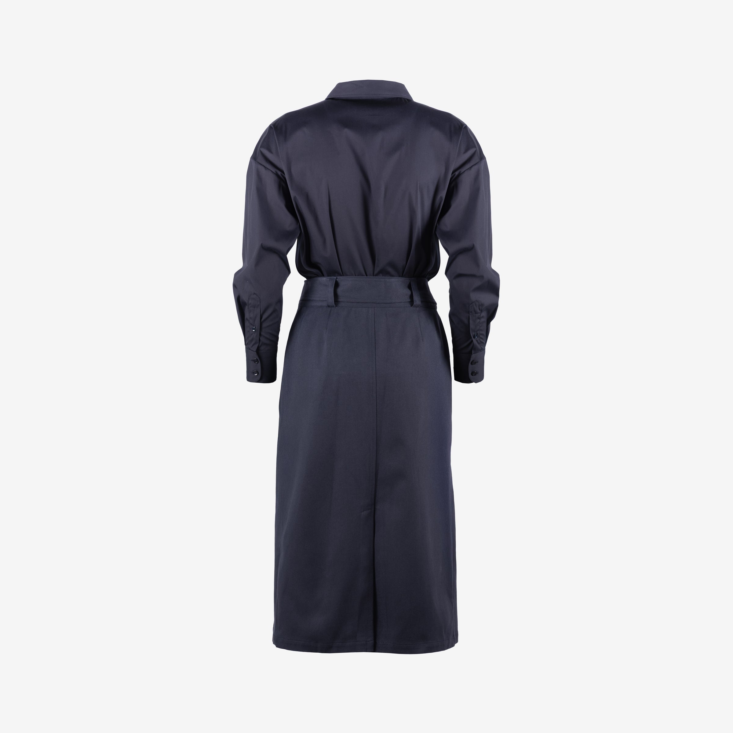 Donkerblauw hemd en rok ton-sur-ton