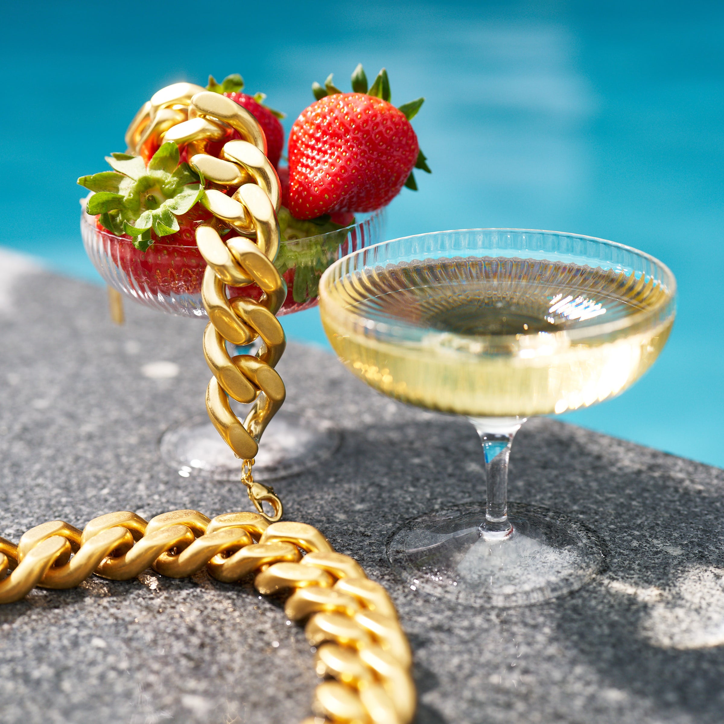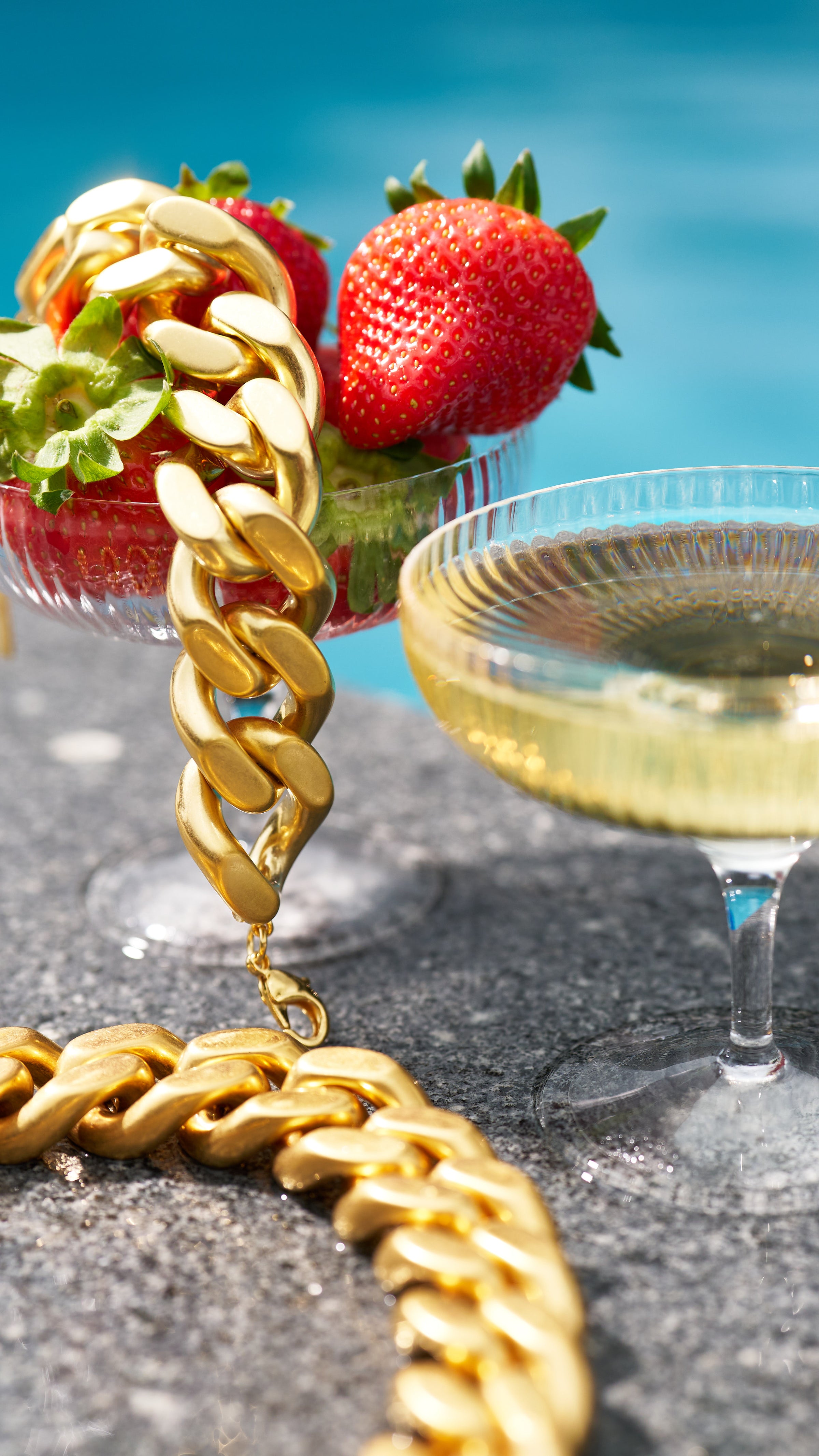 These chunky but very light bracelet with a matt yellow gold-toned finish glam up every outfit.