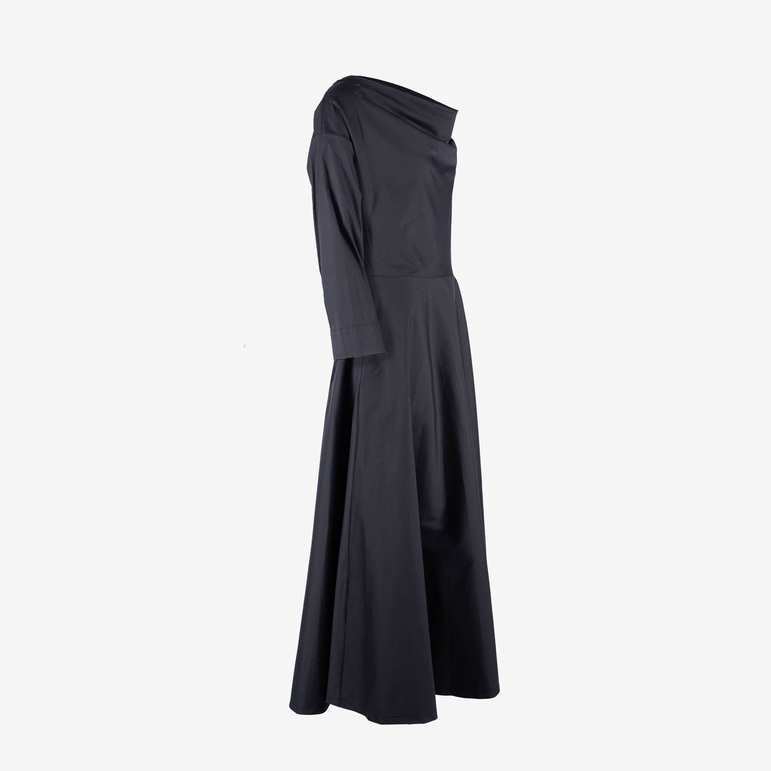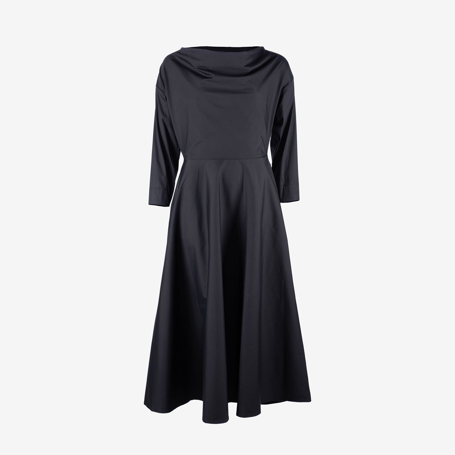 Discover Souâd Feriani's Dress Milla: a stylish cotton dress in a deep blue-black hue, designed for effortless elegance and comfort. The classic boat neck adds a sophisticated touch, while the subtle side pockets offer functionality. Wear the Dress Milla loose for a relaxed look or combine with a belt for a polished silhouette. Perfect for any occasion, from business meetings to elegant dinners.